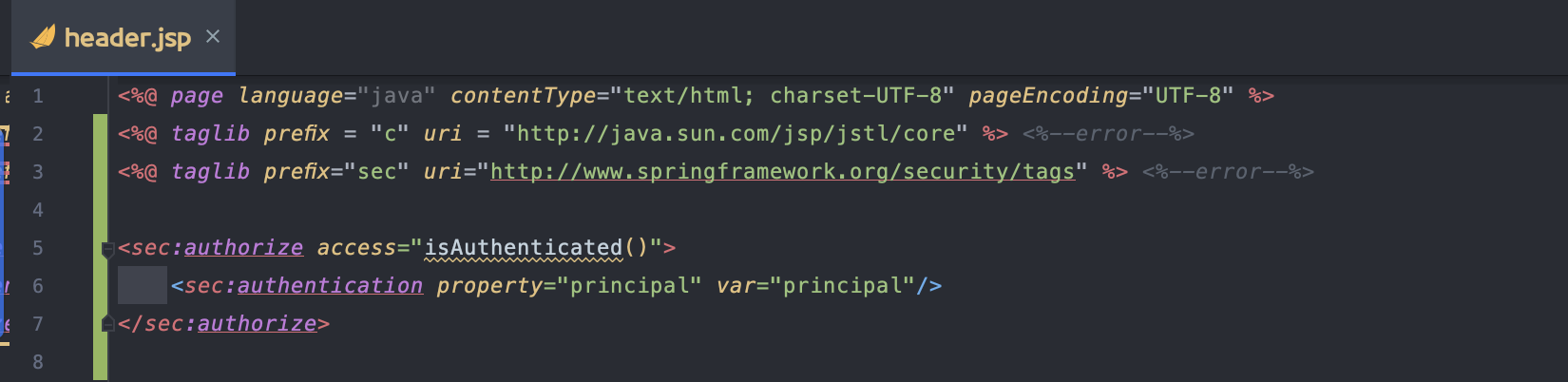<%@ taglib prefix="sec" uri="http://www.springframework.org/security/tags" %> <%--error--%>