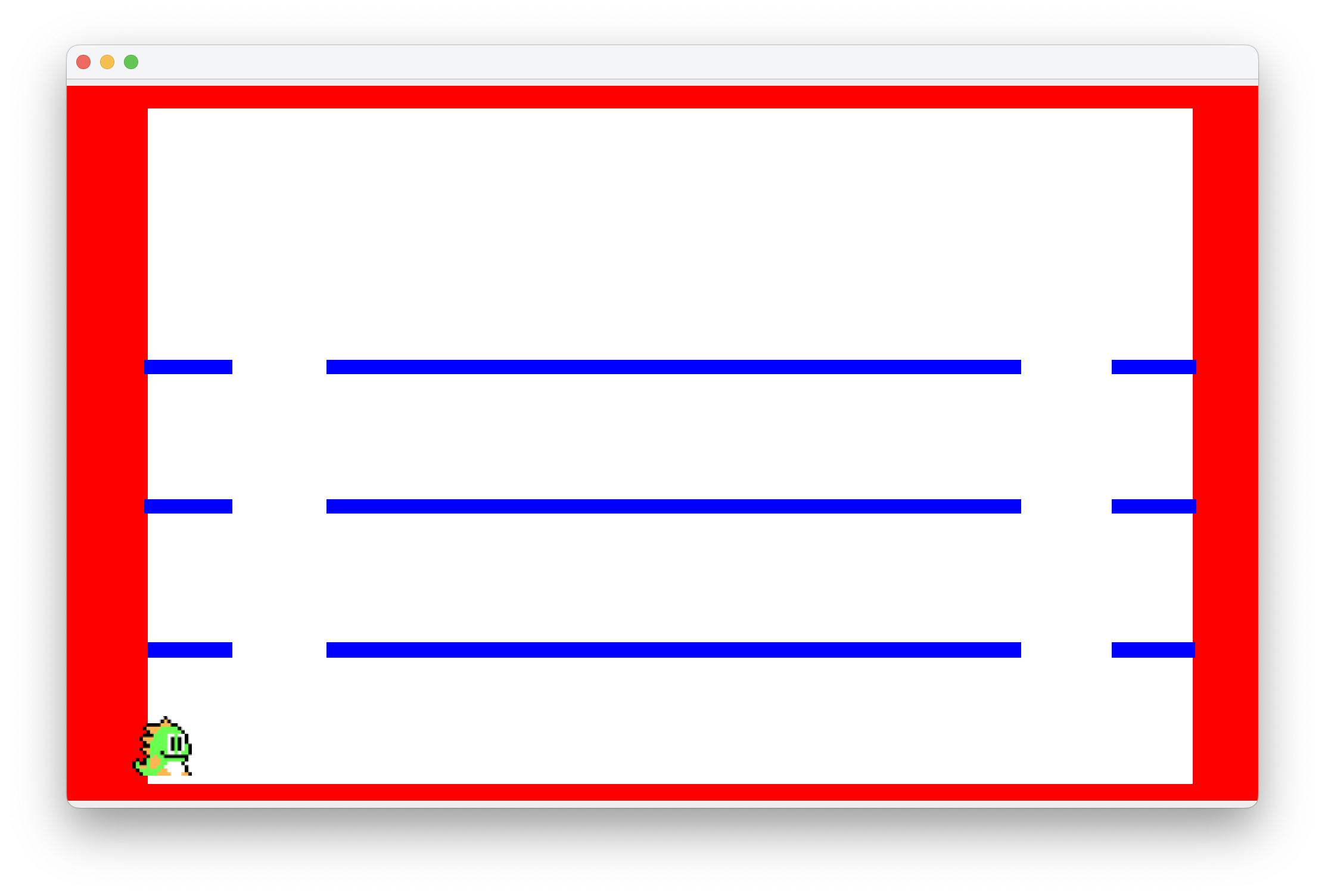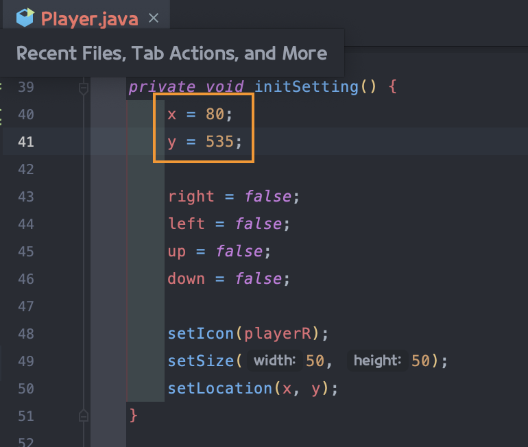 프로그램을 실행 후 바로 왼쪽벽에 충돌이 일어나는 상황이 있을 수 있는데 해당 부분은 player에서 처음 캐릭터이미지가 위치하는 좌표를 수정해주면 된다.