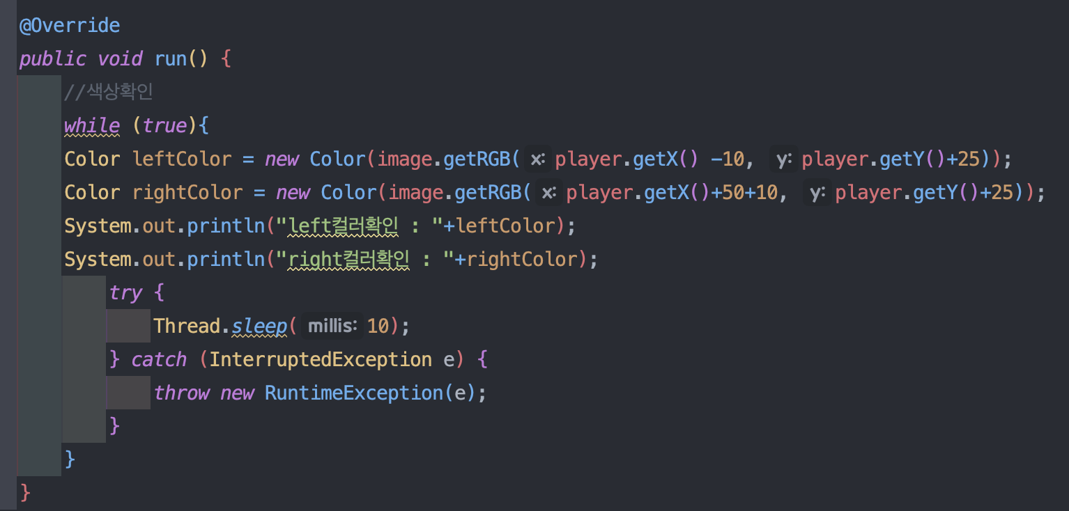 System.out.println("컬러확인 : "+rightColor);