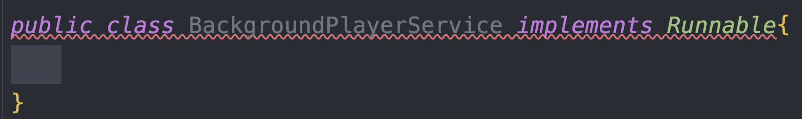 BackgroundPlayerService 클래스를 생성 후 runnable 을 상속해준다.